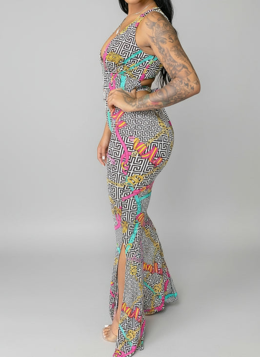 V-Neck Romper Tie Back w/ Side Leg Slit