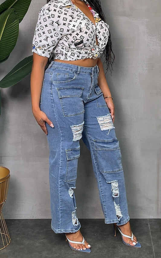 Multi Pocket Ripped Denim Jeans