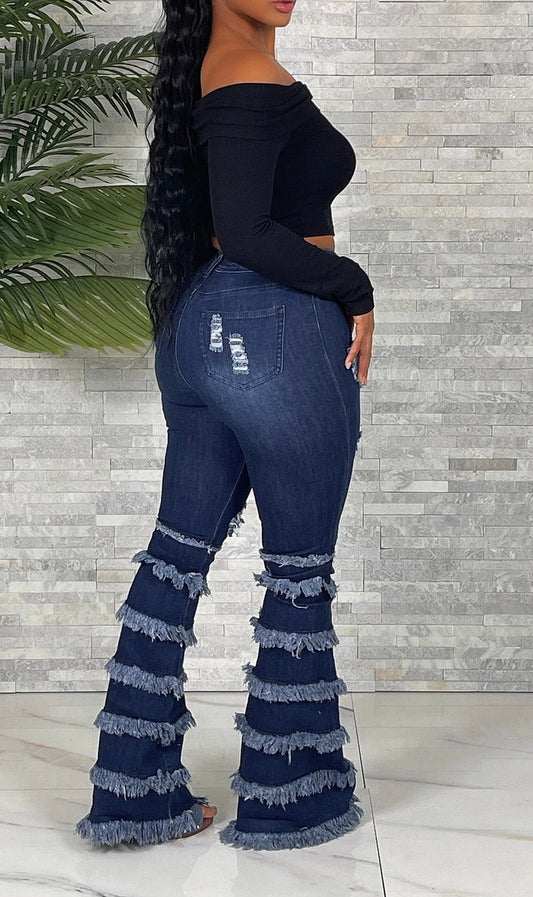 Destroyed Layered Flare Jeans